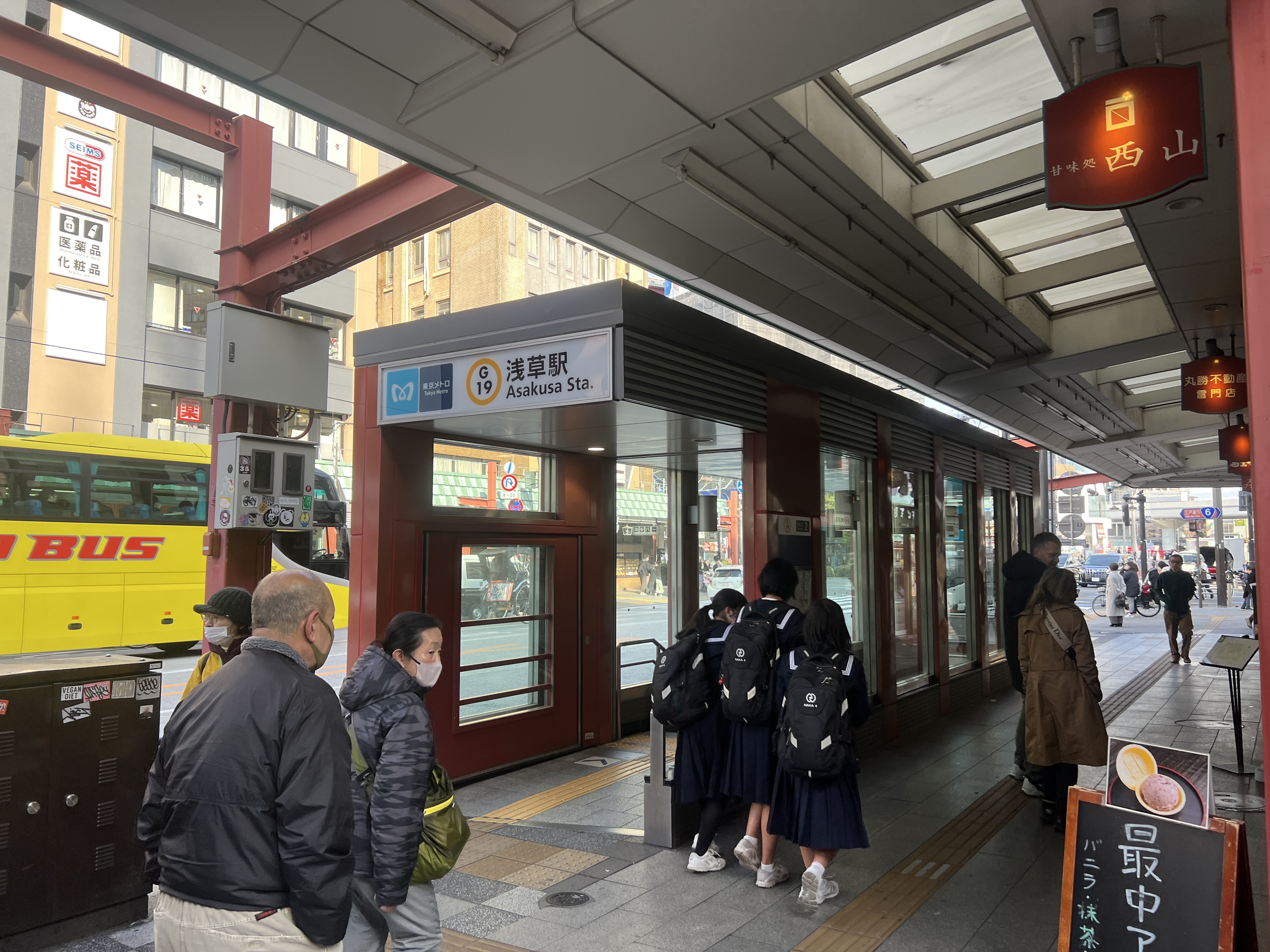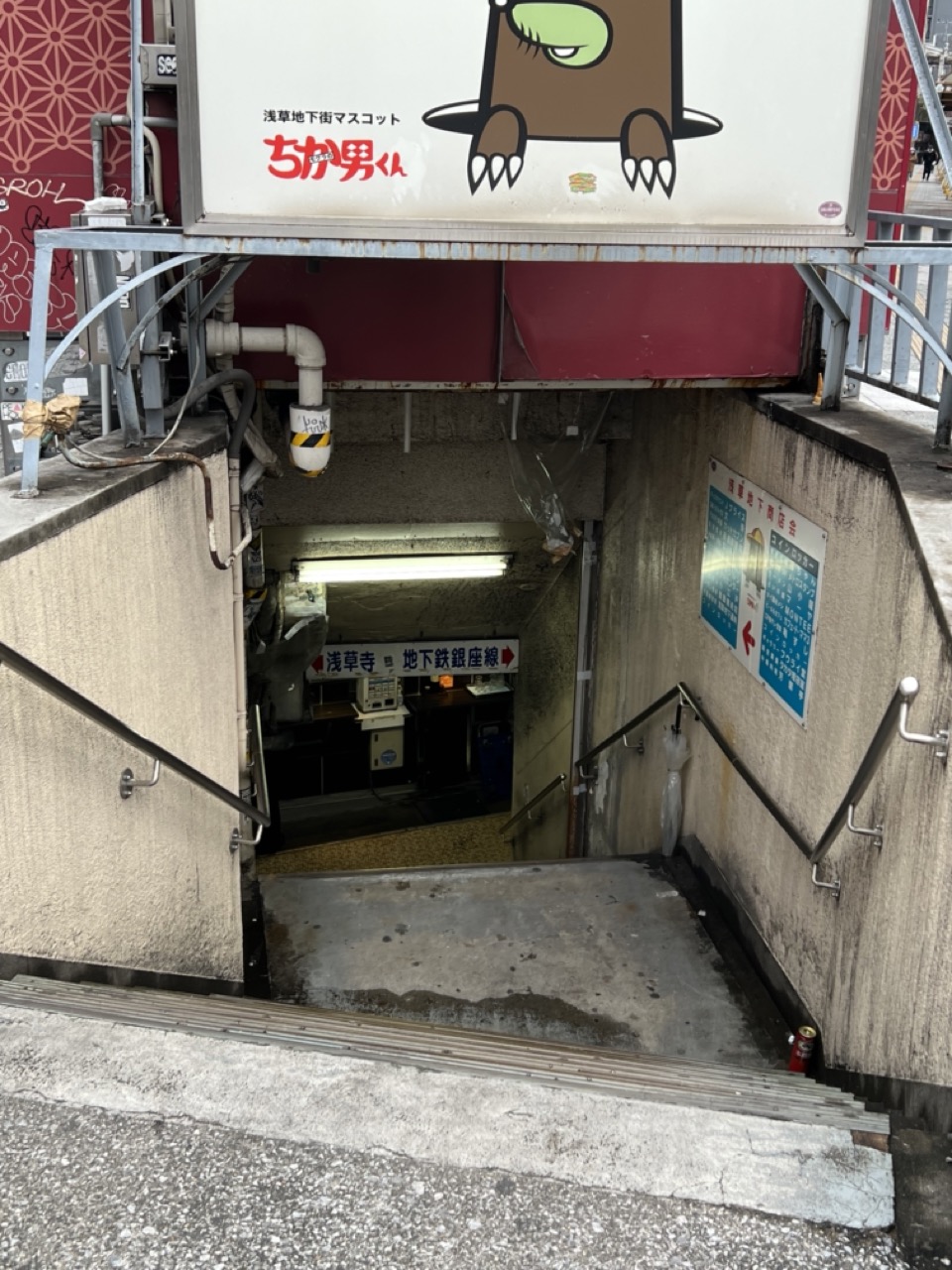 또한, 아사쿠사역은 연간 3천만 명이 찾아오는 세계적인 관광지이지만 엘리베이터가 플랫폼에서 꽤나 멀리 떨어져있습니다. 카미나리몬 쪽에 엘리베이터가 있기 때문에, 카미나리몬 반대편 출구로 가고 싶으신 분들은 어쩔 수 없이 무거운 캐리어를 들고 계단을 낑낑 올라야 합니다. 주변 건축물 때문인지, 지형 때문인지는 모르지만 세계적인 관광지 치고 이래저래 불편한 면이 없지 않아 있는 곳이 아사쿠사입니다. 심지어 한 출구는 3천만 명이 찾아오는 역 치고는 지하 땅굴 들어가는 듯한 이미지를 풍기는 옛 모습의 출구가 지금까지도 남아있습니다.