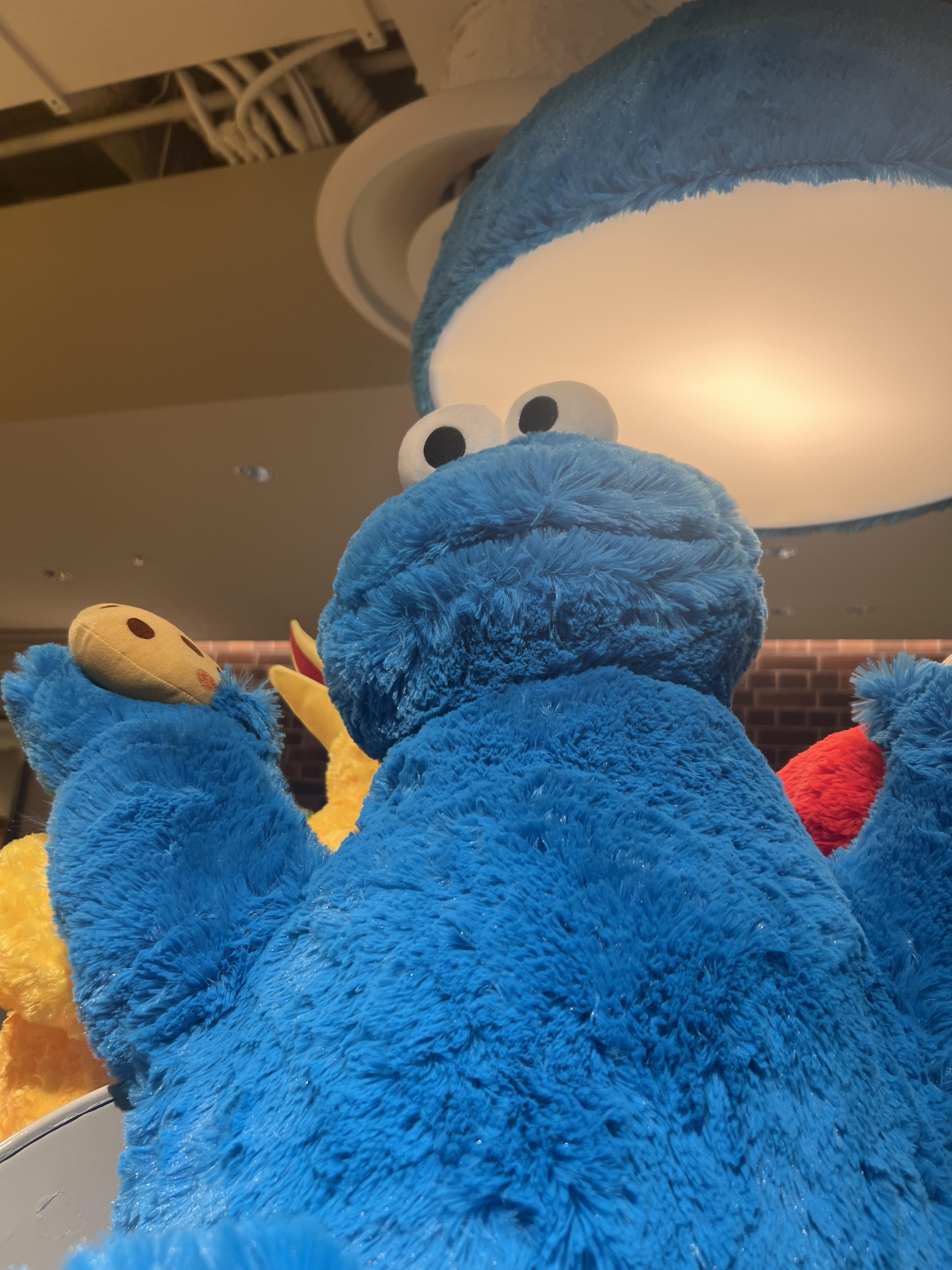 엘모도 인기가 많지만 저는 개인적으로 쿠키몬스터를 가장 좋아합니다 ㅎㅎ. 사진은 겨울에 찍어서 목도리를 두르고 있는 모습입니다. 평소에는 두르지 않고 있어요.