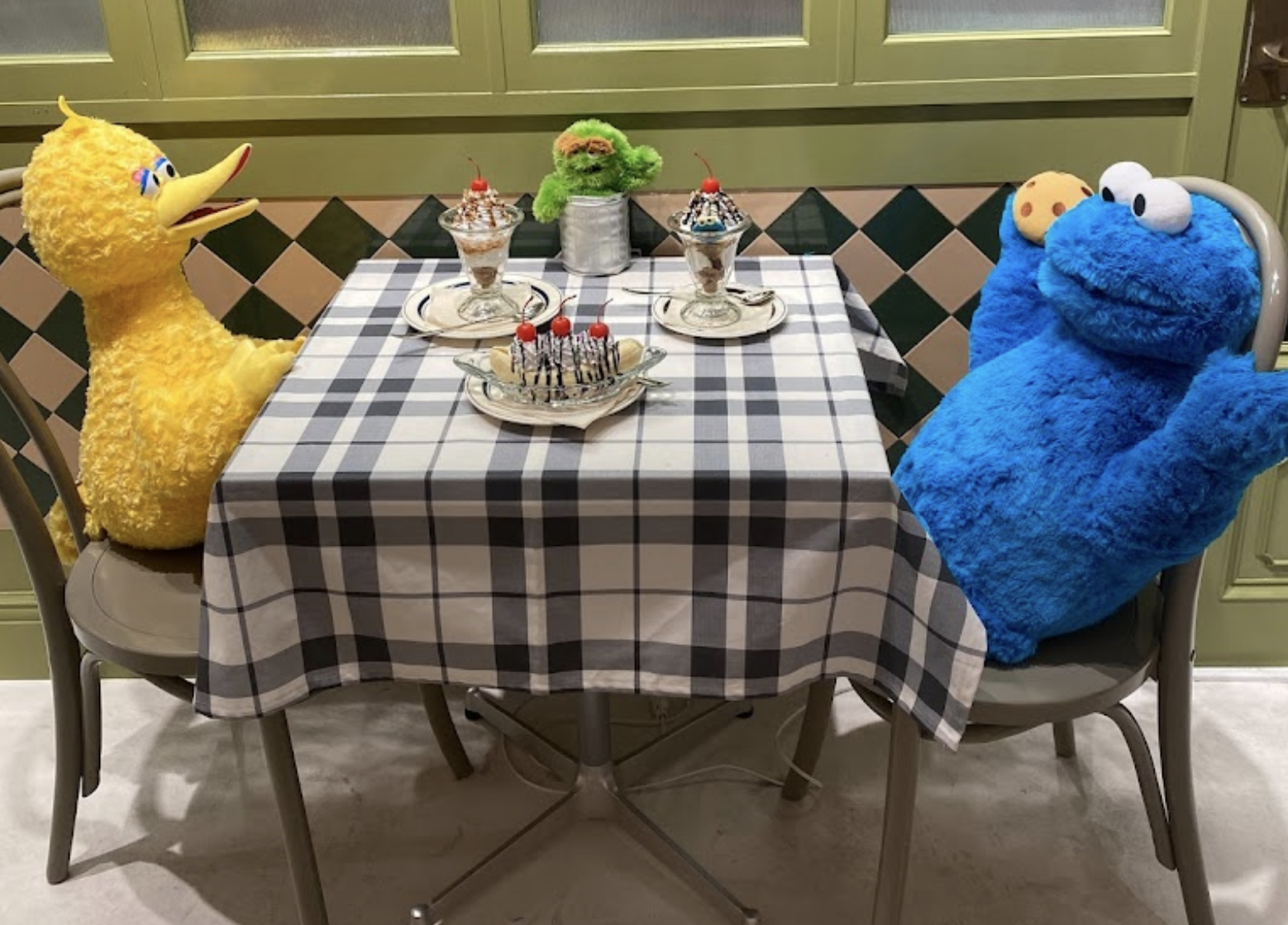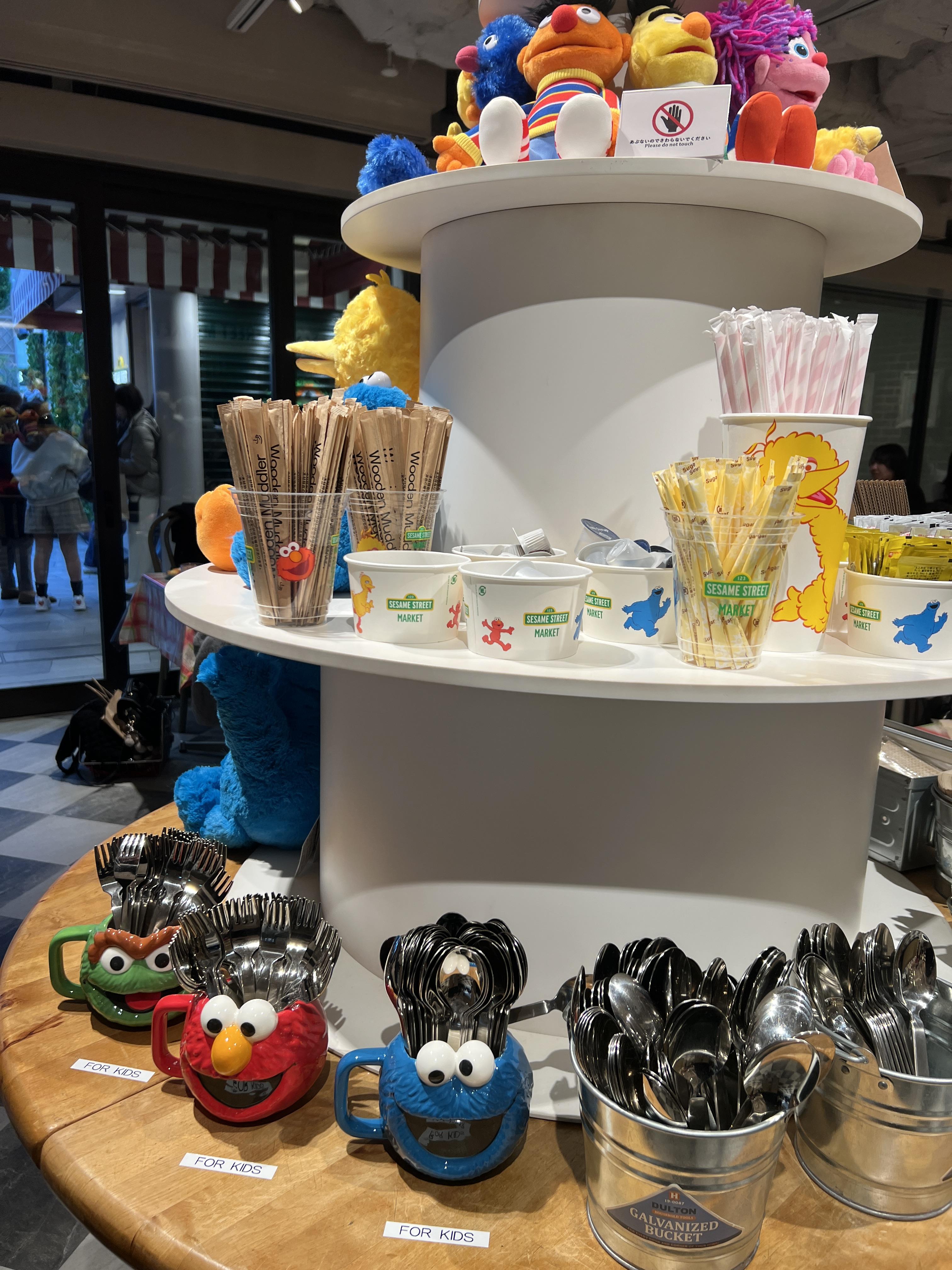매장 곳곳에 세서미 스트리트 캐릭터를 이용한 다양한 인테리어를 구사하고 있어 사진찍는 재미가 있는 곳입니다. 매장 내에서는 일본어로 된 세서미 스트리트 음악과 대사가 흘러나오고 있습니다.