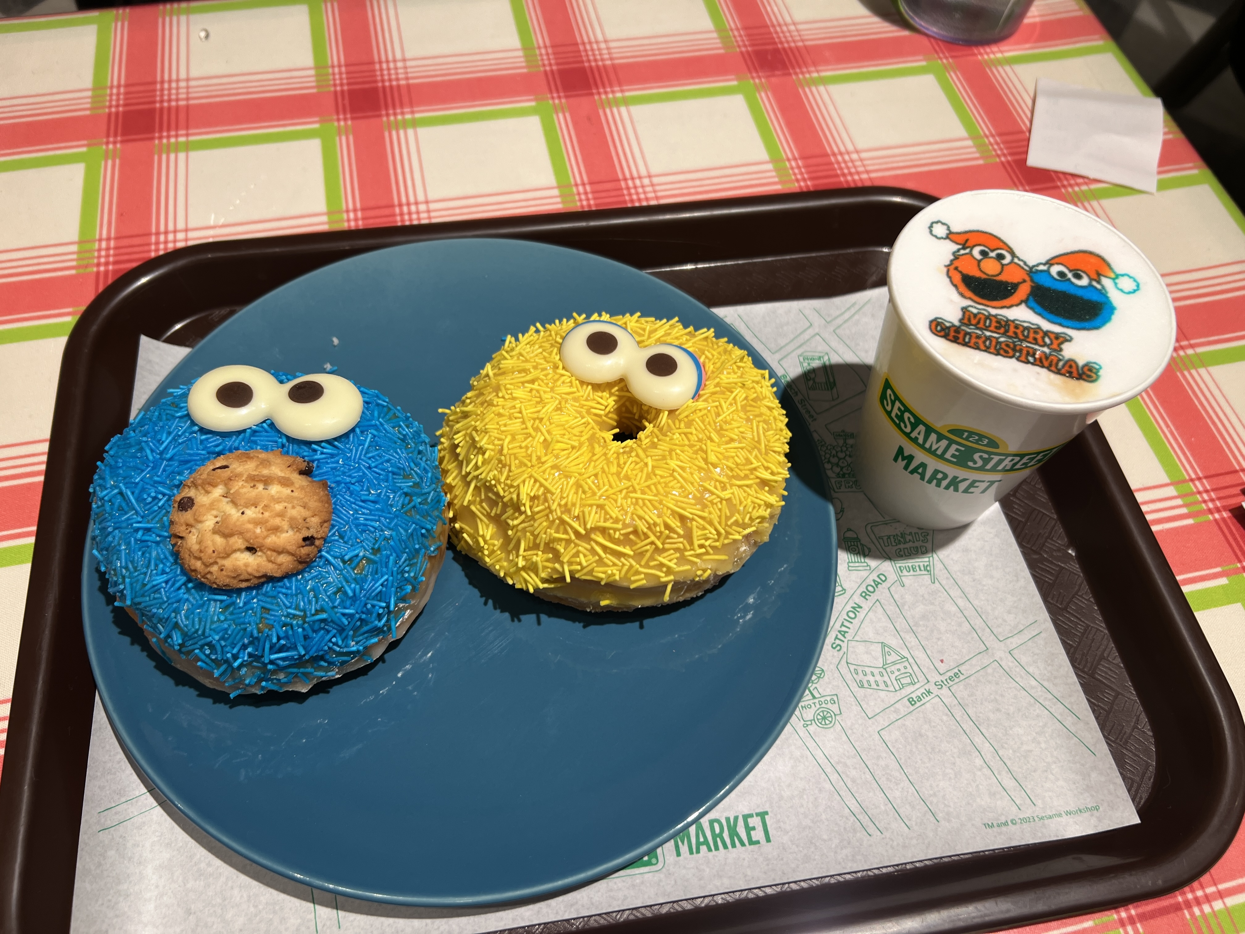 저는 제가 좋아하는 빅 버드와 쿠키 몬스터 도넛을 시켰습니다만, 엘모도 인기가 많은 도넛 중 하나입니다.