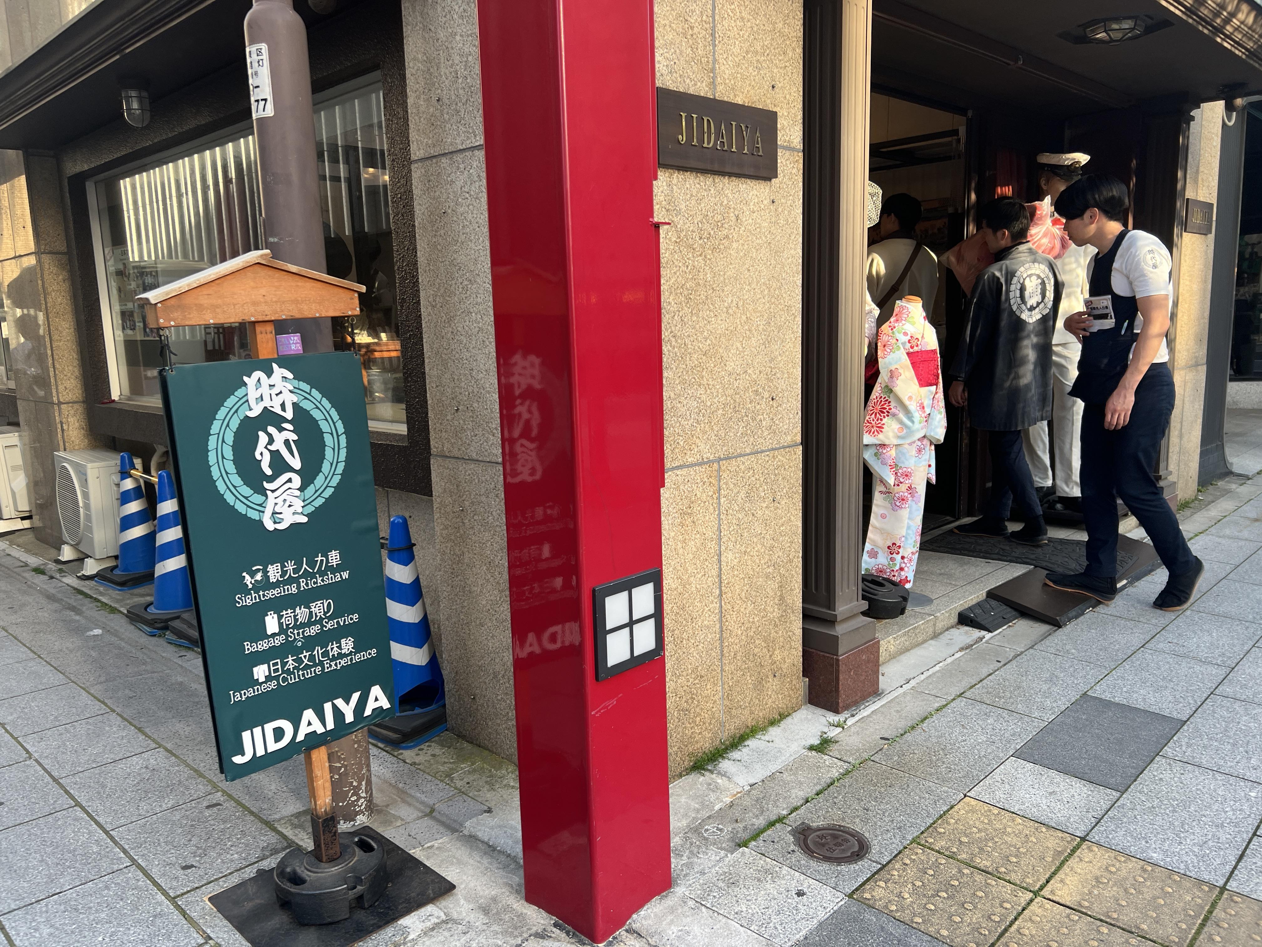 아사쿠사에서 기모노 대여, 인력거 투어, 전통 풍습 투어 등을 진행하는 지다이야 라는 곳입니다. 위치는 카미나리몬에서 조금 떨어져있는 편입니다.