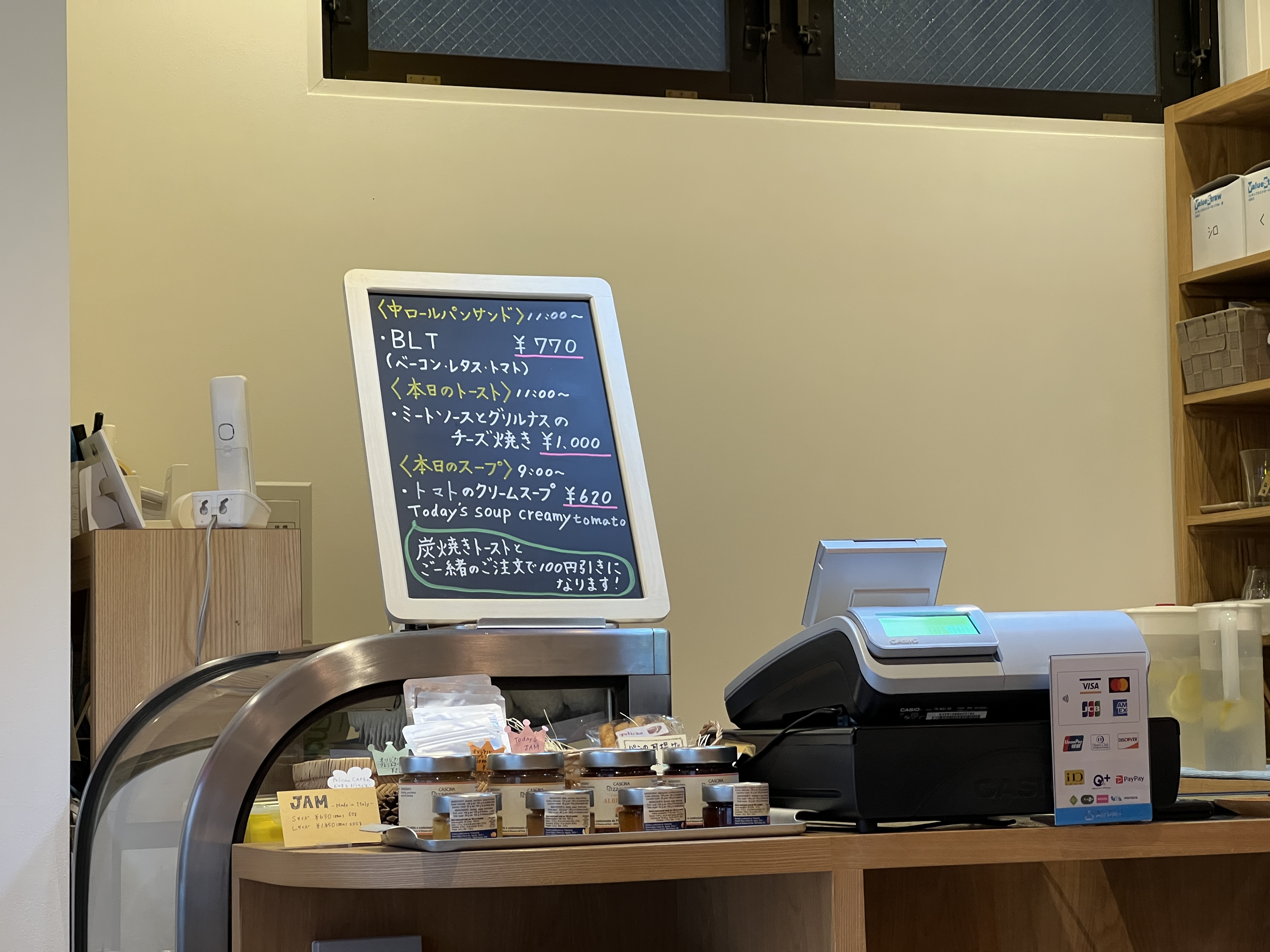 토스트 외에도 오늘의 토스트와 오늘의 메뉴라고 하여 11시 이후부터 판매하고 있습니다. 이 날은 미트소스의 날이었네요. 이 외에도 펠리칸 굿즈(에코백, 티셔츠 등)와 수제 잼까지 판매하고 있습니다.