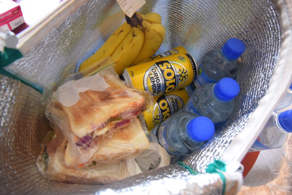 물도 몇 통씩 들고, 에너지드링크를 비롯한 음료, 그리고 점심으로 싸갈 샌드위치나 바나나 등도 항상 들고가야한다.