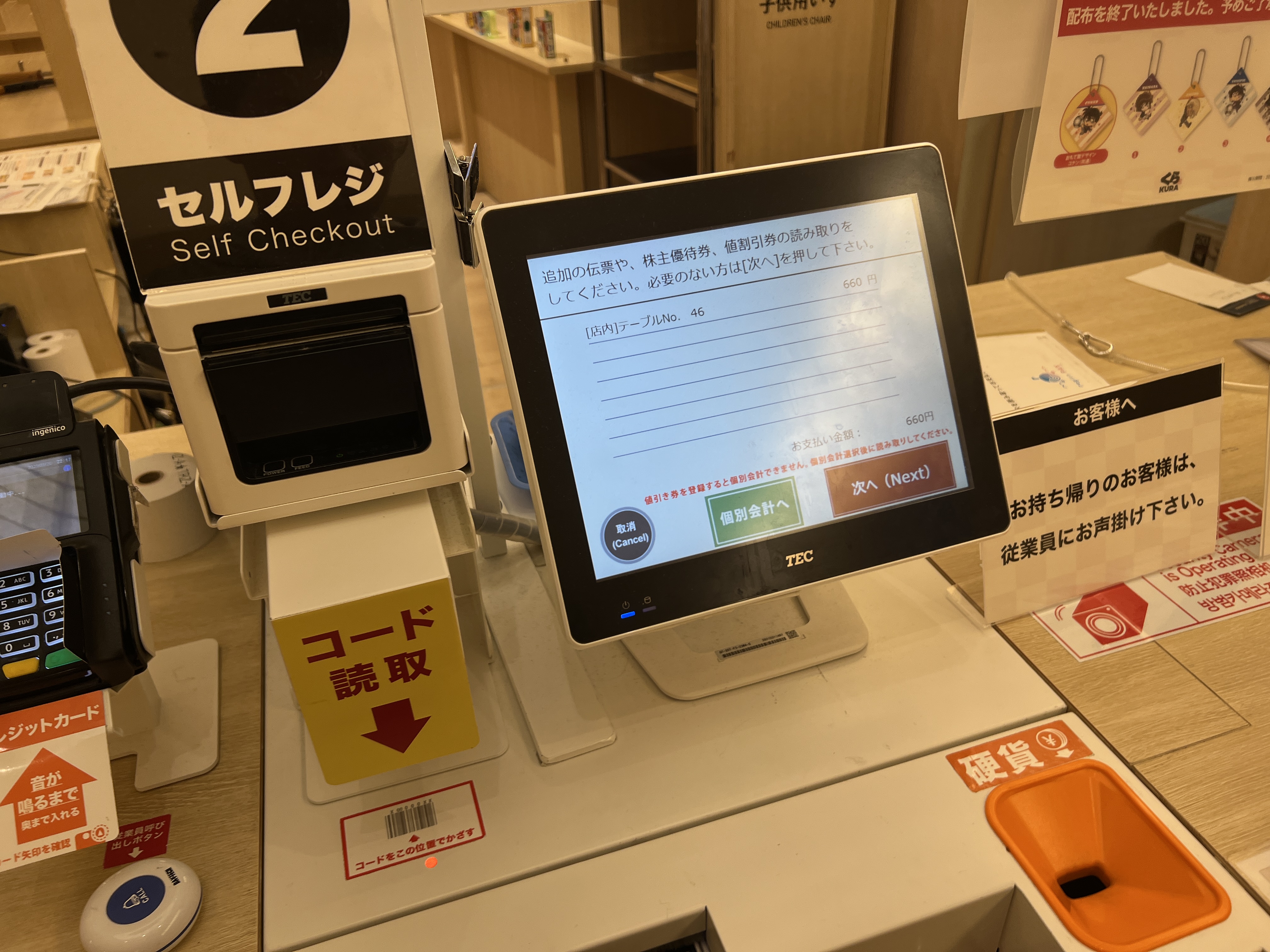 처음 받았던 테이블 번호자 적혀져있는 종이를 계산대에 스캔하면 금액이 나오고 카드 결제 혹은 현금 결제를 진행하시면 됩니다.