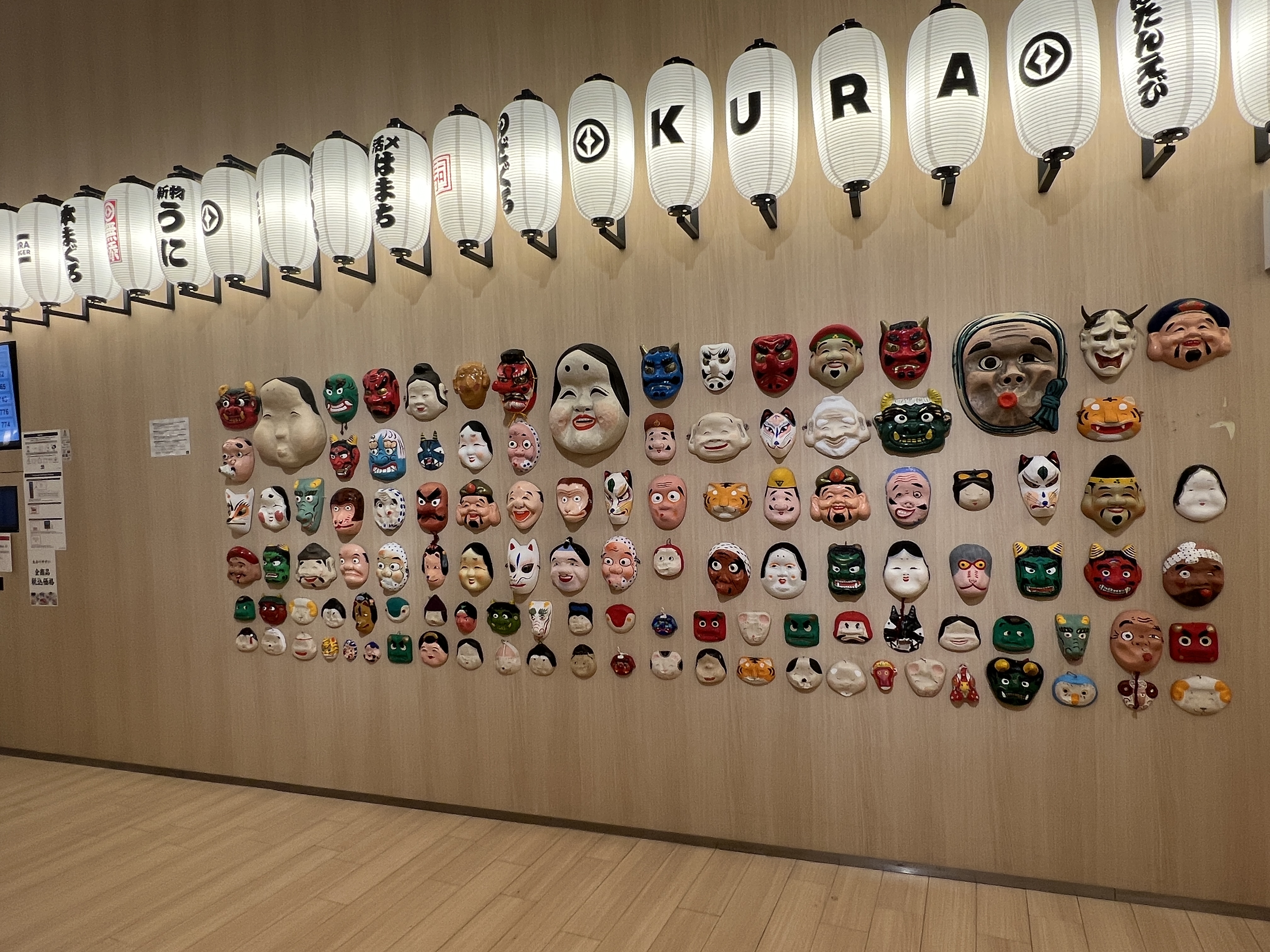 매장에 들어가면 쿠라스시를 대표하는 등과 함께 일본 전통 가면이 붙어있습니다. 이 앞을 포토존 삼아 많은 분들이 사진을 찍기도 합니다.