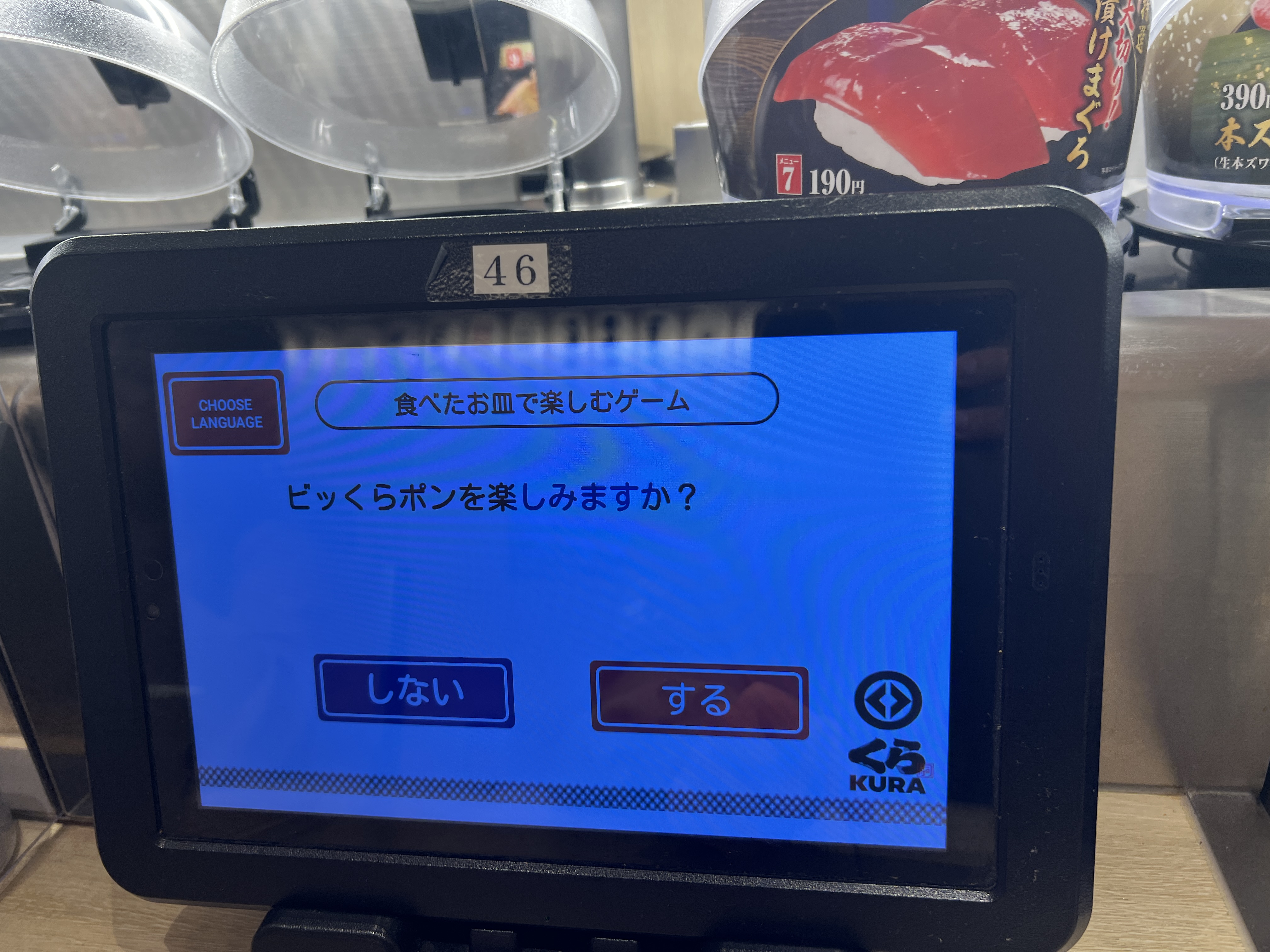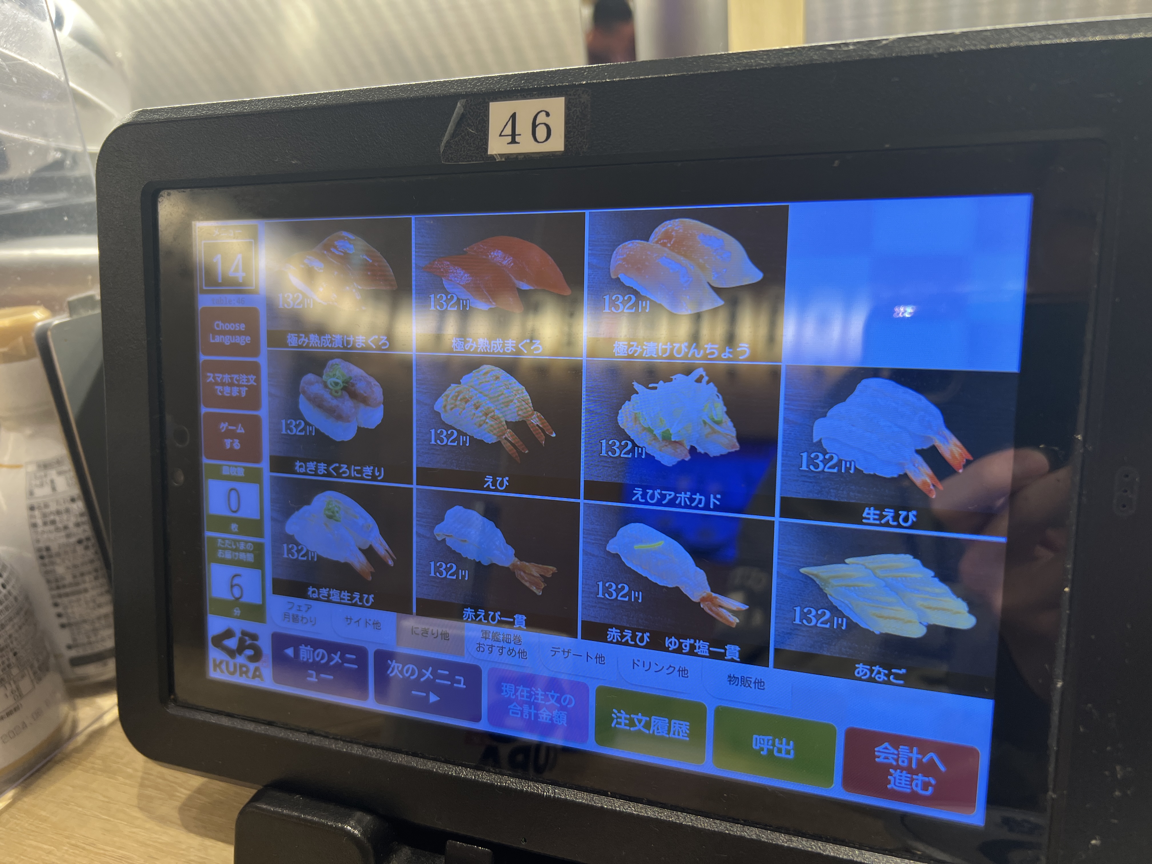 입니다. 새우튀김 초밥 빼고 전부 132엔이기 때문에 저 5접시만 먹어도 10피스이기 때문에 배도 적당히 부르고 뽑기까지 할 수 있게 됩니다!