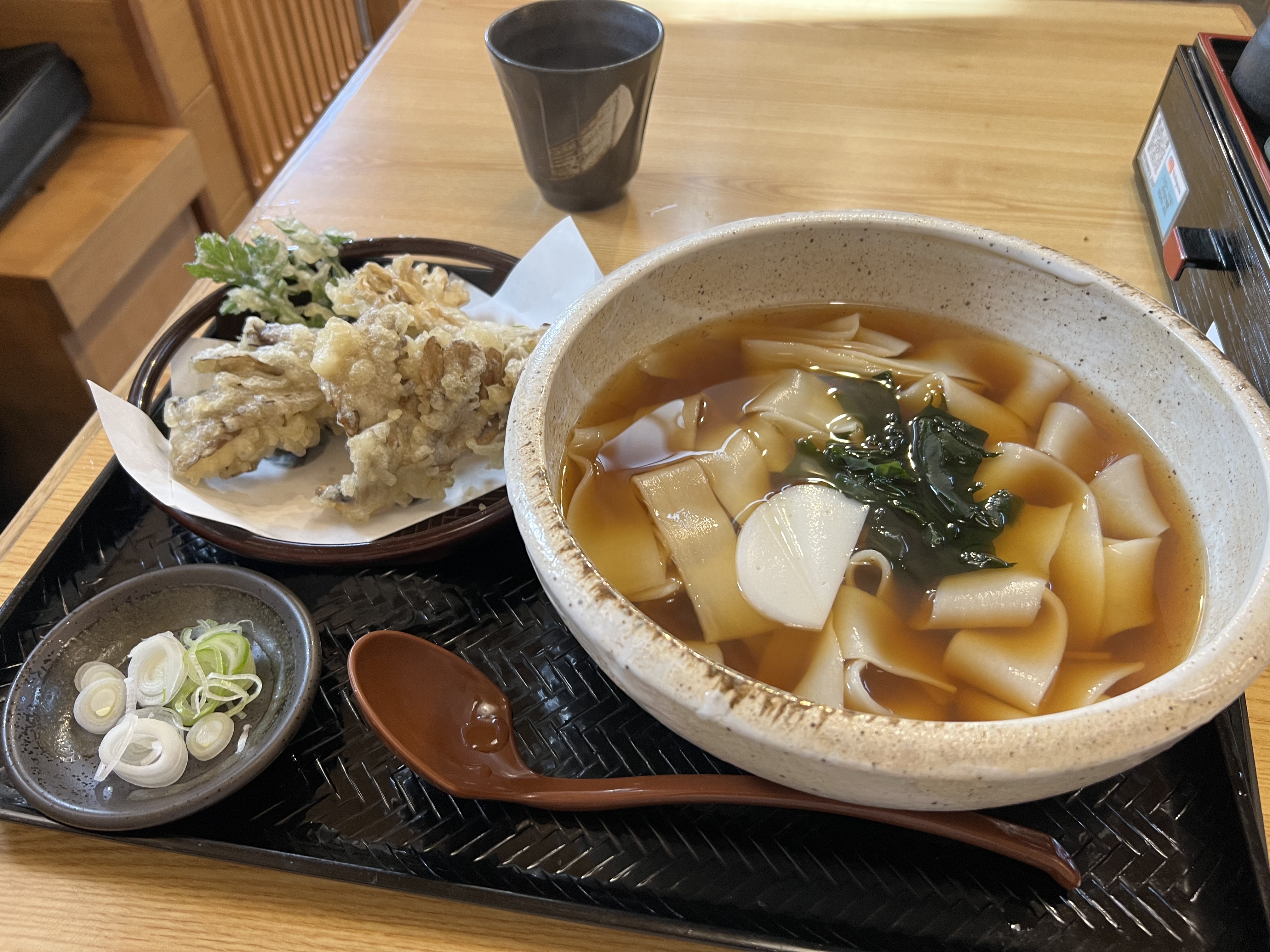 이 곳의 핵심 메뉴는 넙적우동과 튀김 세트다. 국물은 위에 소개한 소바집과 같은 육수를 쓰는건가 싶을 정도로 연한 간장육수를 쓰고 있다. 우동과 함께 제공되는 채소 튀김이 괜찮았는데, 모든 채소는 군마현에서만 생산된 채소를 사용한다고 한다. 역시 이 곳에서만 맛볼 수 있는 음식이기에 웨이팅 상황에 따라 추천할 수 있는 맛집.