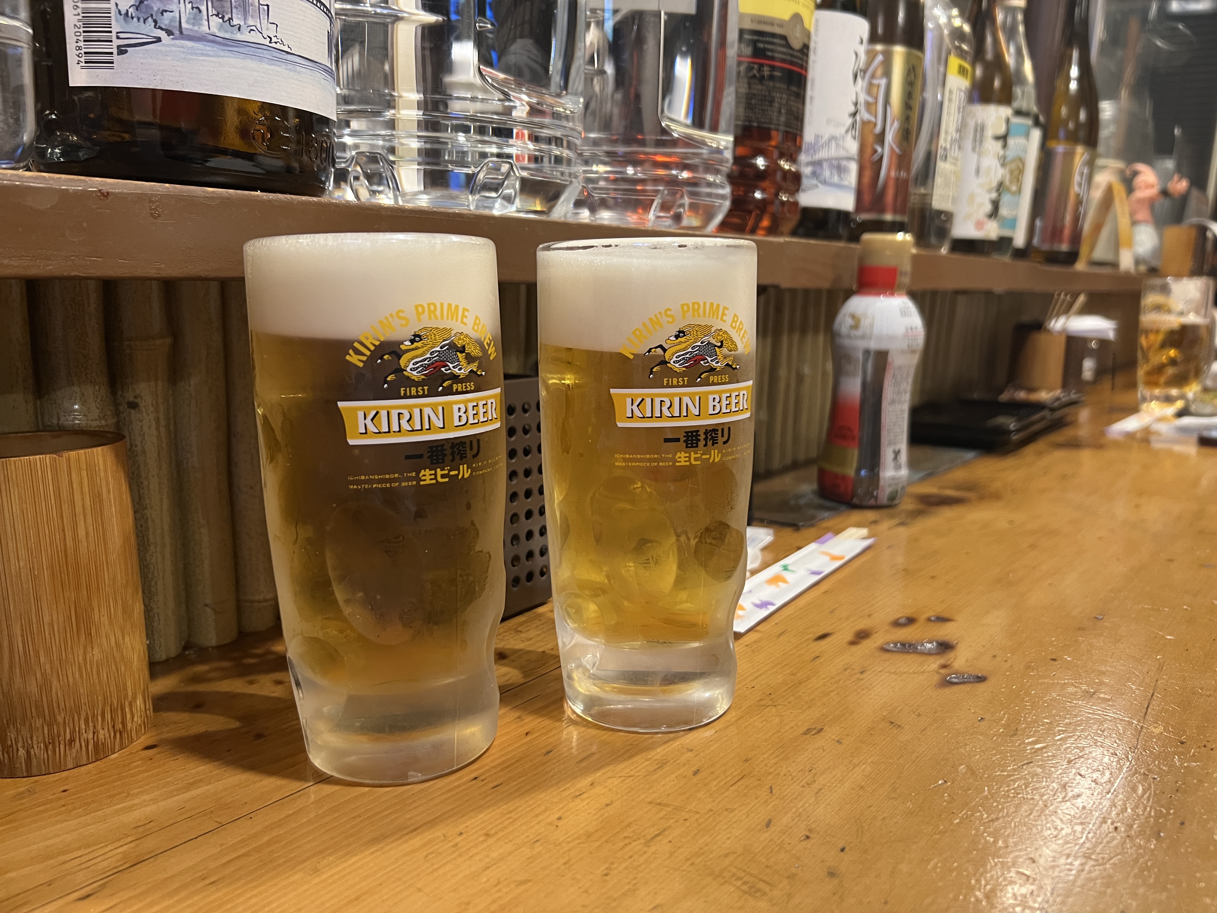 주문한 야끼토리가 나오고 이제 막 먹기 시작하는데, 문이 드르륵 열린다.