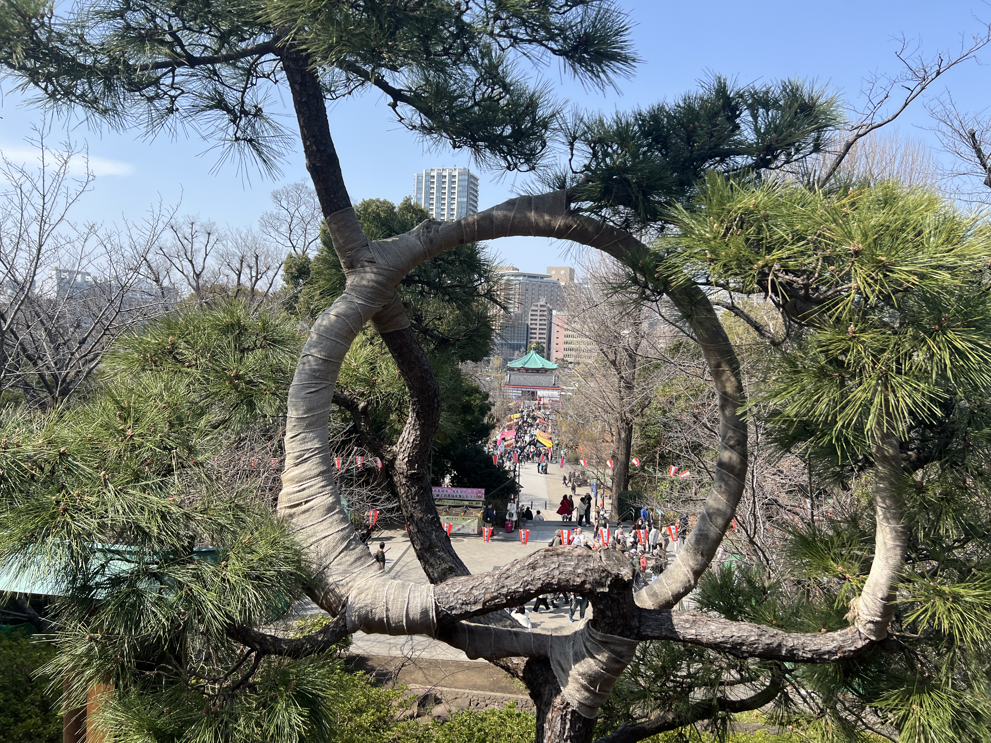 교토의 산으로 둘러쌓인 분지 지형이라 적의 침입에 대한 방어에 유리했고, 산에서 올려다보는 경치가 꽤 아름다운데, 도쿄는 사실 산이 거의 없는 동네입니다. 그럼에도 불구하고 교토의 것처럼 도쿄에도 옮겨 지어야 했기에, 그나마 언덕배기였던 우에노 산에 짓기 시작했습니다.